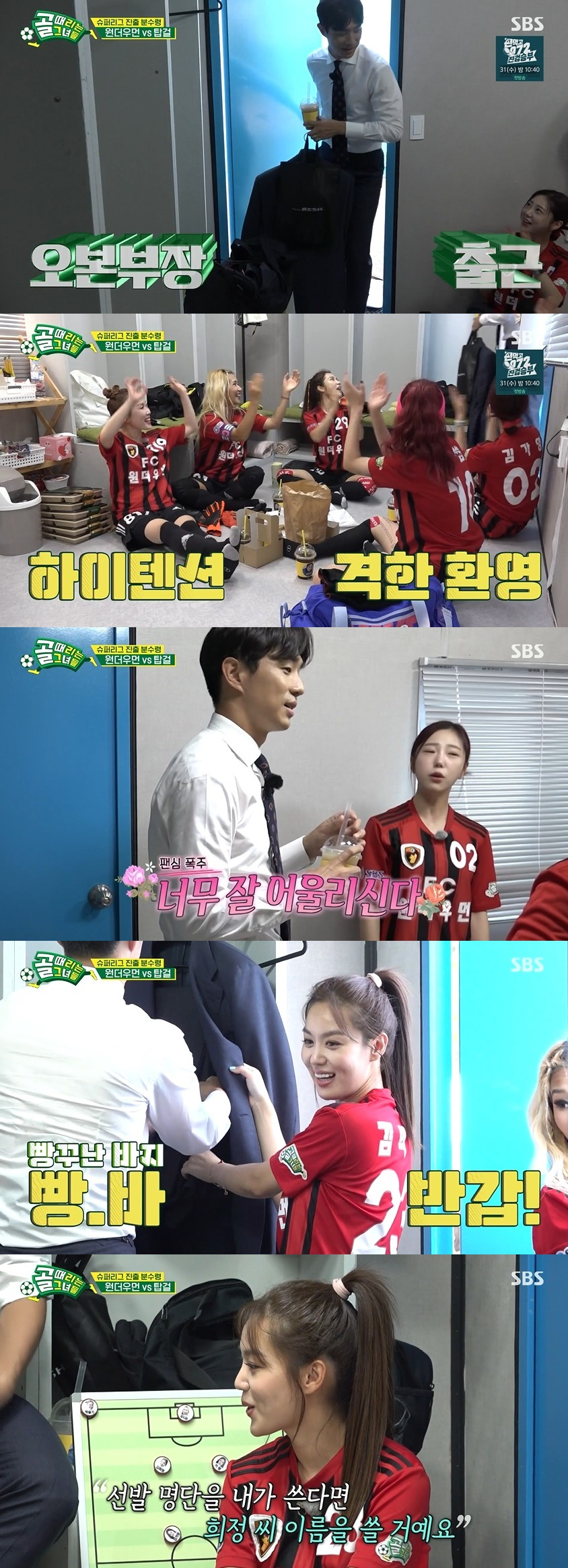 24일 오후 방송한 SBS 예능 프로그램 '골 때리는 그녀들' 시즌2(이하 '골때녀')에서는 오범석 감독이 등장하자 FC 원더우먼 멤버들이 환호해 팬미팅 분위기가 된 모습이 담겼다.