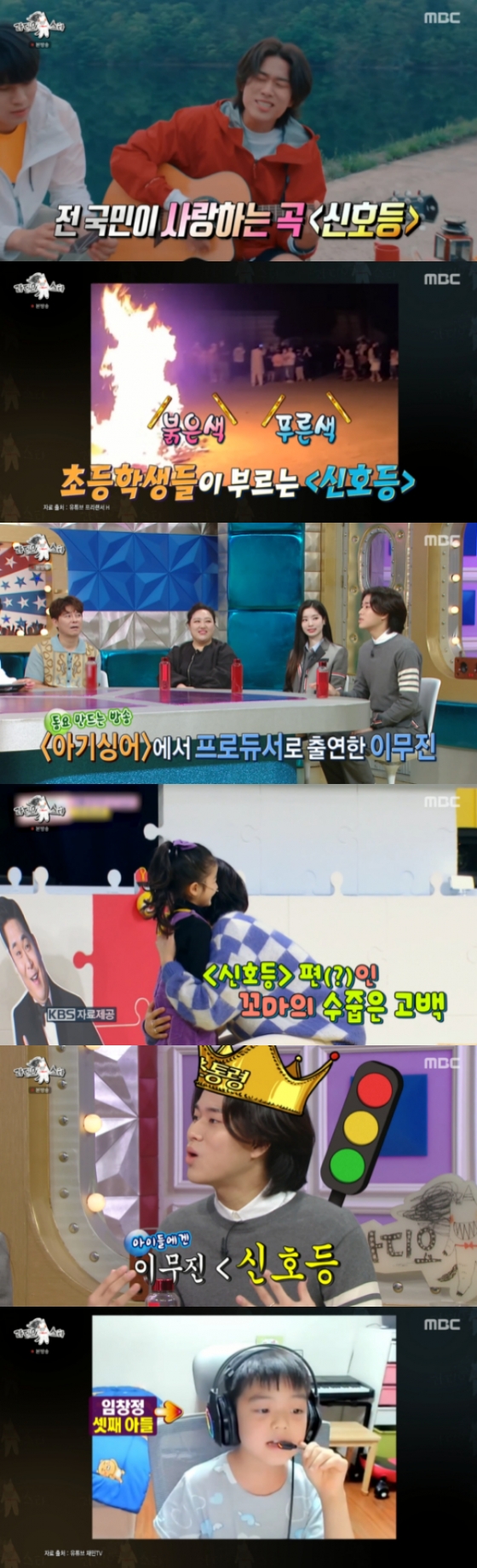 김국진은 이무진에 "초통령 인기를 실감하는 순간"에 대해 물었다. 이무진은 "유치원에서 가사도 안 틀리고 떼창하는 영상을 많이 받는다"고 전해 놀라움을 안겼다. 이무진은 "아기 싱어'에 나갔었다. 선생님 역할로 갔는데 보통은 '이무진씨 팬이에요'하는데 귀여운 아이가 달려와 '신호등 팬이다'라고 하더라"라고 말했다. 이에 안영미는 "신호등이라는 캐릭터가 있는 느낌이네"라며 이해했다.