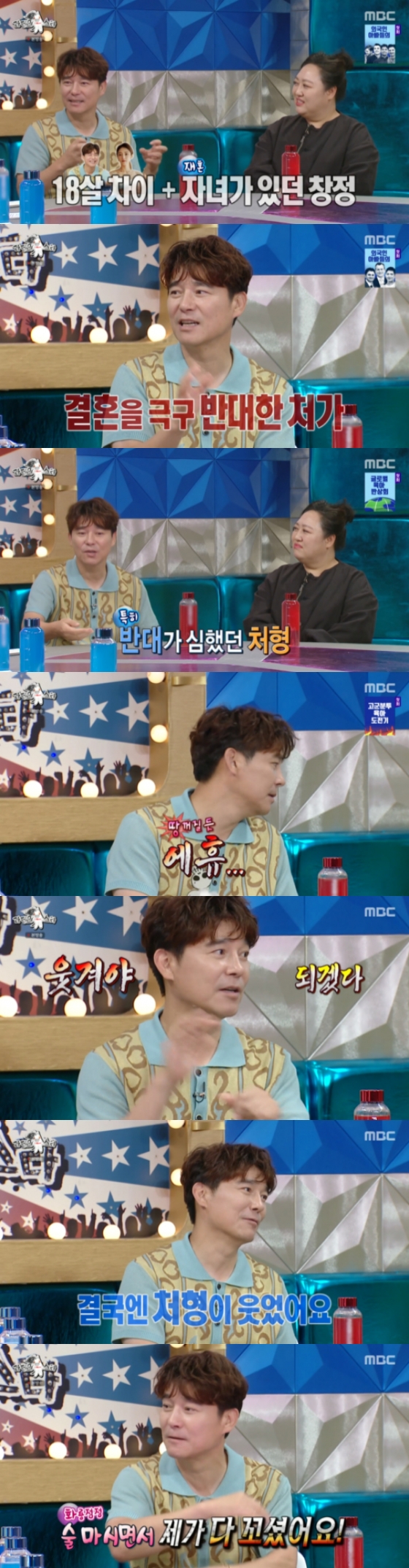 임창정은 18살 차이에 애도 있어 결혼 시 우여곡절이 많았다고 전했다. 임창정은 "엄청난 반대를 했다. 처형이 결혼 소식을 듣고 중국에서 왔을 정도였다. 상견례 자리에 저는 혼자 가고 거기는 단체로 오셨는데 다들 한숨만 쉬었다. 질문을 하다가도 계속 한숨을 쉬었다"라며 당시의 상황을 전했다. 임창정은 "'이 사람들을 웃겨야겠다'생각했다. 그래서 웃기기 시작했고 결국 처형이 웃었다. 그래서 처형이랑 가족들이랑 해서 술을 먹고 결혼을 설득했다"고 전해 폭소를 자아냈다.