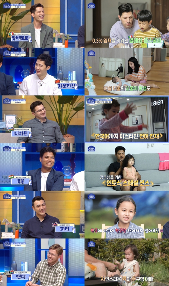 '물 건너온 아빠들'에서는 상위 0.3% 영재를 키워낸 이탈리아 과학고 출신 이탈리아 아빠 알베르토 몬디, 사교육부터 딸을 위해 손수 음식 준비까지 퍼펙트 케어하는 중국 아빠 쟈오리징, 3살 딸에게 정성스레 인도 오일 마사지를 해주는 '딸 바보' 인도 아빠 투물, 독립육아의 달인 아제르바이잔 아빠 니하트, 영어 번역부터 육아까지 다재다능함 뽐내는 젠틀한 엘리트 영국 아빠 피터, 자연 속에서 딸을 키우고 싶은 남아프리카공화국 아빠 앤디가 출연해 육아 노하우를 공개한다.