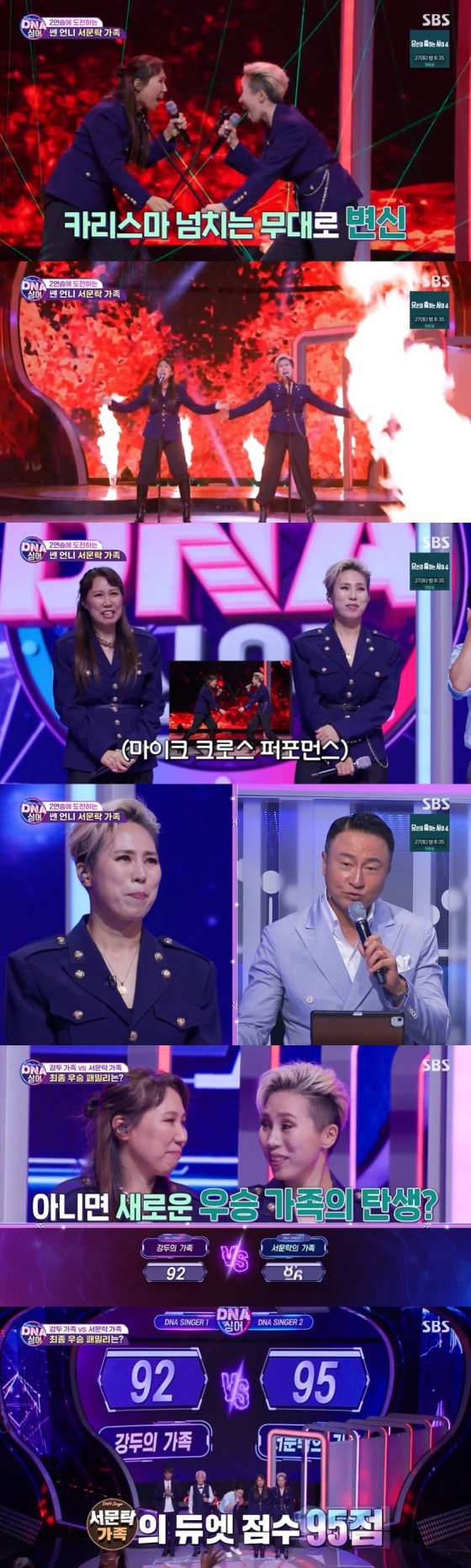 25일 오후 방송된 SBS 예능프로그램 '판타스틱 패밀리-DNA 싱어'(이하 '판타패')에서는 서문탁 가족이 강두 가족을 제치고 2연승을 차지한 모습이 담겼다.