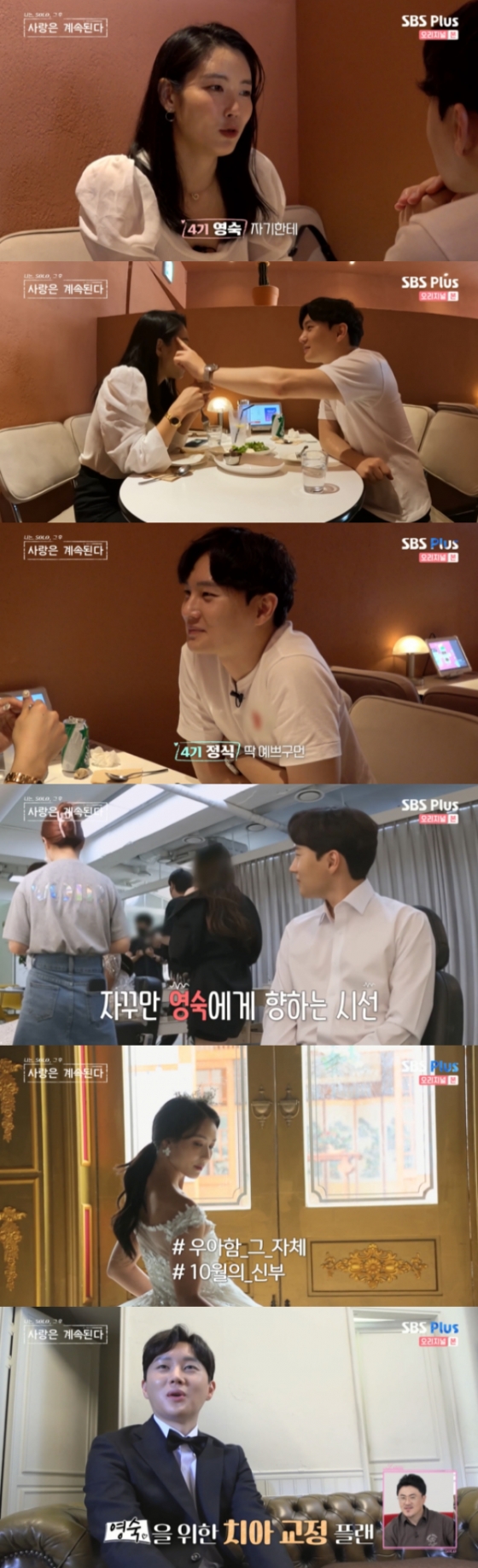 지난 25일 방송된 ENA(이엔에이)·SBS PLUS 예능프로그램 '나는 SOLO : 사랑은 계속된다'(이하 '나솔사계')에서는 4기 영숙과 4기 정식이 웨딩촬영을 하는 모습이 담겼다.