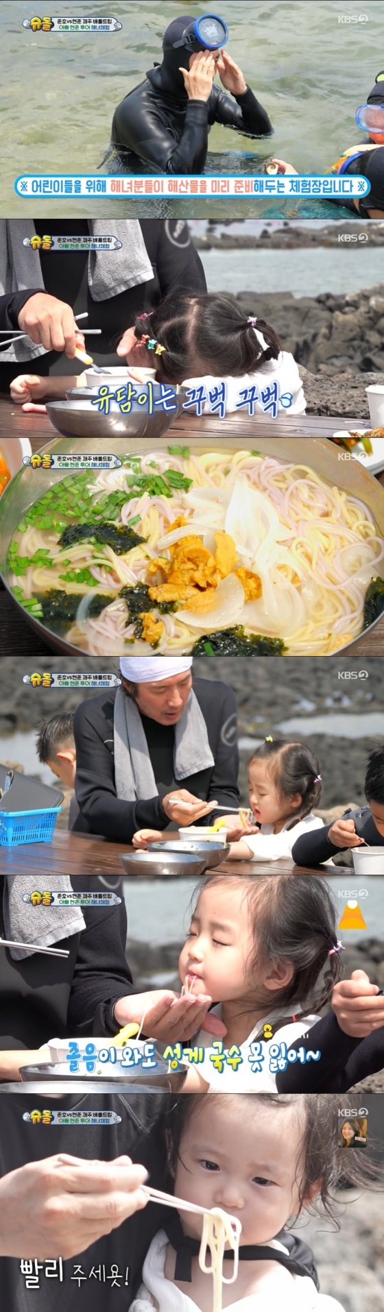 '슈돌' 신현준X정준호, 자녀들과 해녀 체험..졸아도 못참는 성게 국수