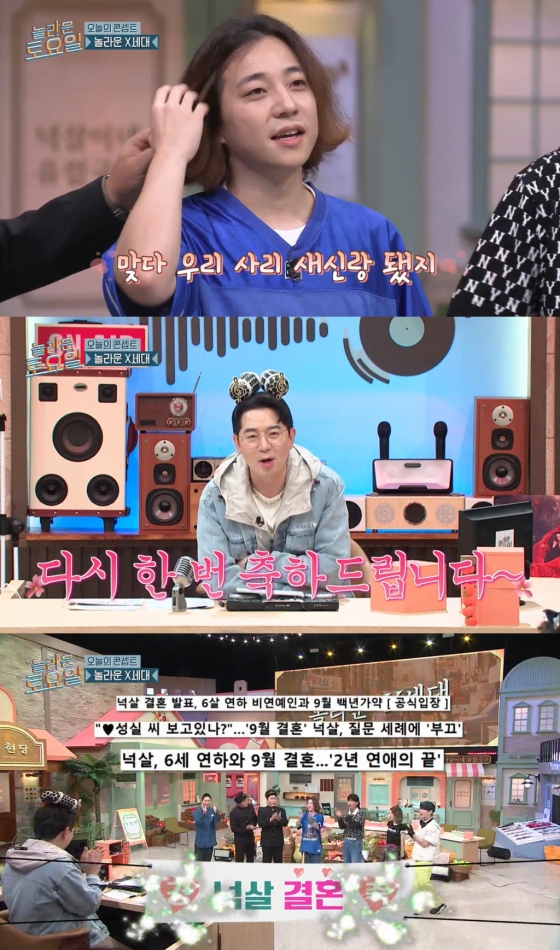 넉살은 "그게 무슨 말이냐"라면서도 예비신부에게 "우리 첫 번째 결혼 잘 해보자"라며 달달한 메시지를 전했다.