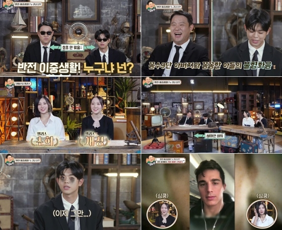 전주에 이어 2주 연속 MC 호흡을 맞추게 된 김구라-그리 부자는 이날 '이중생활'이라는 주제에 맞춰 '맨인블랙' 콘셉트로 슈트를 맞춰 입고 등장한다. 그러나 동시에 주제를 외칠 때, 호흡이 맞지 않아 그리는 머쓱해하고 김구라 역시 "부자간에 이렇게 안 맞기도 쉽지 않은데"라고 말해 웃음을 자아낸다. 특히 정장용 구두까지 신고 온 그리와 달리, 김구라는 상체만 나오는 프로그램의 특성에 맞춰, 하의는 흰 바지에 운동화를 신는 '방송 노하우'를 발휘, 극명한 대비를 이룬다.