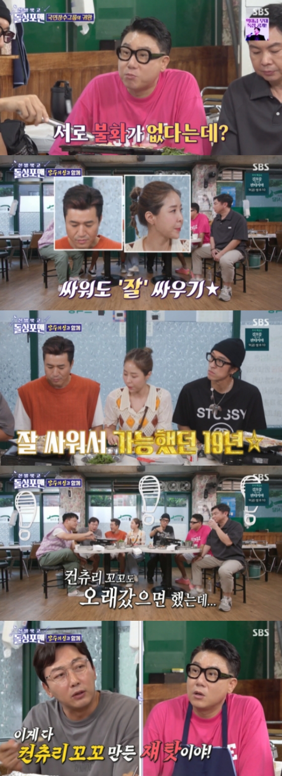 한편 이상민은 "코요태의 장수하는 비결이 불화가 없데"라고 말했다. 신지는 "잘 싸우는 거"라며 장수 비결을 밝혔다. 신지는 "가슴에 품지 않고 잘 싸우고 잘 풀려고 노력한다"라고 전했다. 탁재훈은 "컨츄리 꼬꼬도 오래됐으면 했는데 다 내 잘못이야. 리더인 내 잘못이야"라고 자책했다. 탁재훈은 이상민에 삿대질을 하며 "네가 왜 그렇게 만들었어. 안 한다고 그랬지"라고 언성을 높여 웃음을 유발했다.
