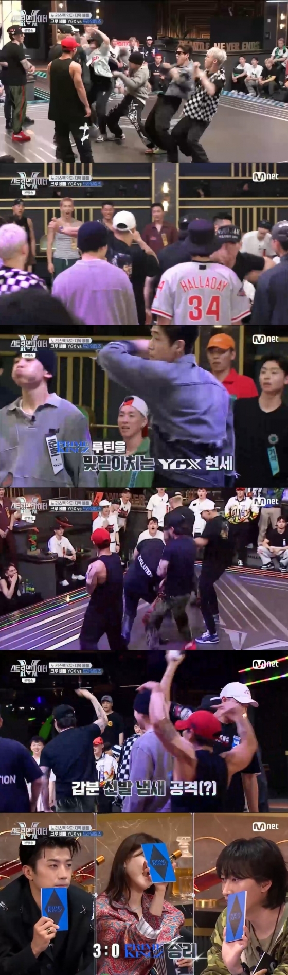 이날 노 리스펙 약자 지목 배틀 3라운드가 진행됐다. 3라운드는 5 대 5로 진행되는 단체 크루 vs 크루 대결로 이뤄졌다.