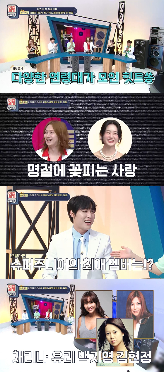 이날 '힛트쏭'은 추석을 맞아 성대현, 채리나, 홍지윤, 골든차일드 이장준과 함께한다. 이들은 시청자들이 직접 뽑은 한가위 노래방 애창곡들을 소개하며 진한 공감대와 알찬 재미를 선사할 예정이다. 또 에너지 넘치는 떼창으로 명절 분위기를 뜨겁게 달굴 것으로 기대를 높이고 있다.