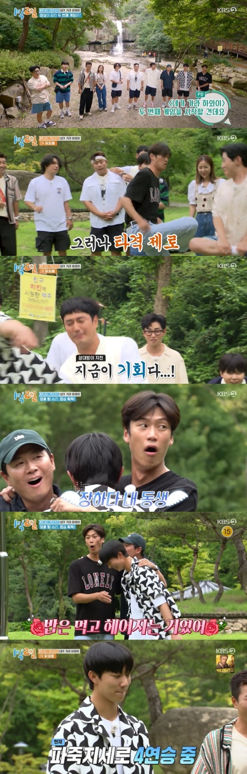 11일 오후 방송된 KBS 2TV 예능프로그램 '1박 2일 시즌4'(이하 '1박 2일')에서는 신지 팀과 연정훈 팀은 점심 식사를 두고 닭싸움 대결을 펼쳤다.