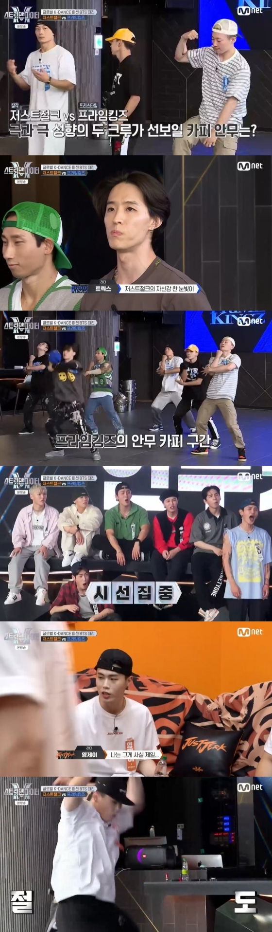 이날 3단계 미션으로 소개된 안무 카피 미션은 서로의 안무를 따라 하고, 진 팀은 백업이 되는 방식이다. 절도 있는 안무로 세계적인 인기를 끈 저스트절크의 안무에 프라임킹즈 리더 트릭스가 욕심을 보였다.