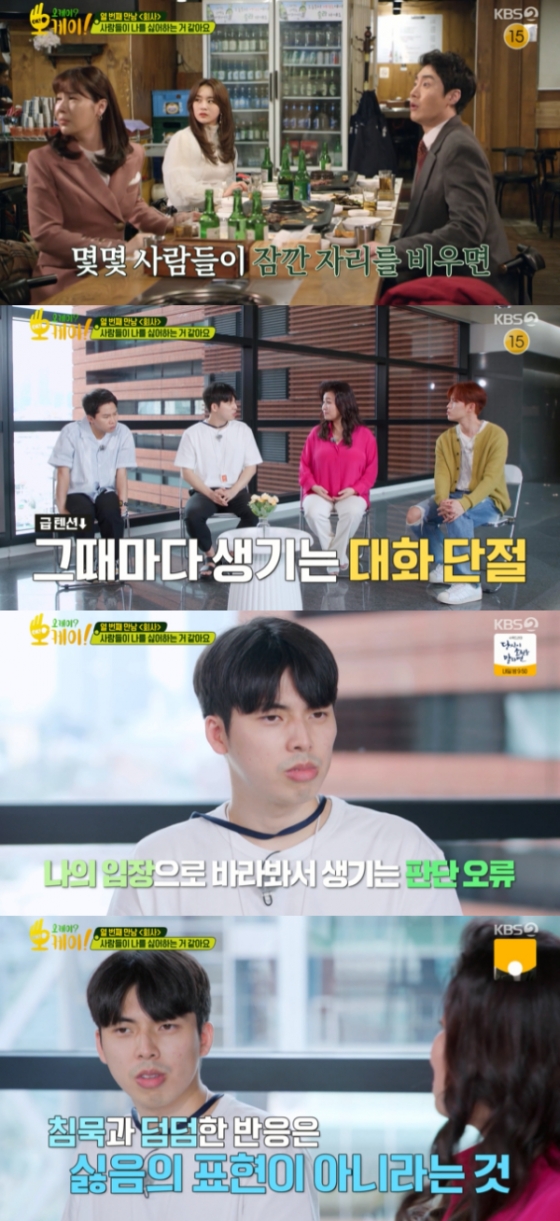 고민의 주인공은 "침묵이 생기면 제가 불편한 사람이고 눈치 없이 끼어든 것 같은 생각이든다"고 고민했다. 이어 "항상 제가 먼저 다가가야 되고 인위적으로 액션을 취해야 된다는 그런 느낌이 든다"라고 전했다.