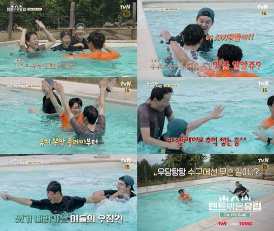 '텐트 밖은 유럽' 유해진, 진선규, 박지환, 윤균상이 우당탕탕 수구 대결을 펼친다.
