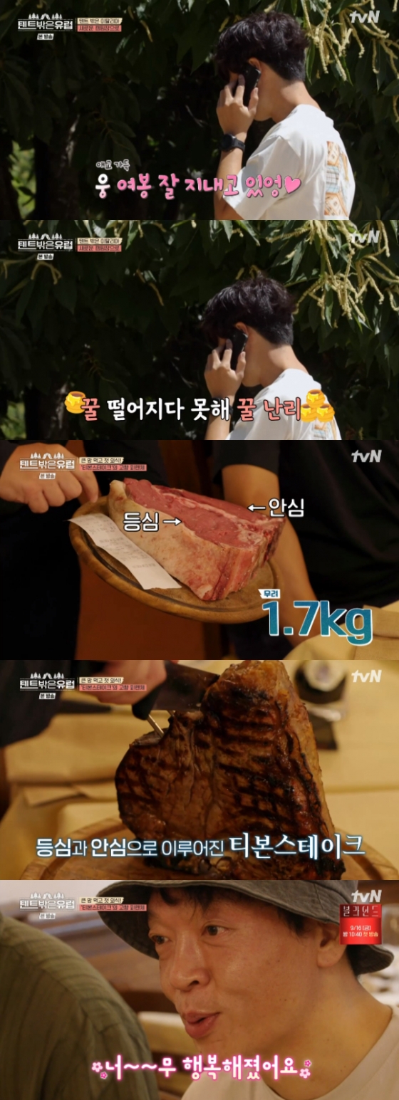 '텐트 밖은 유럽'에서 박지환이 피렌체의 한 레스토랑에서 티본스테이크를 먹고 행복해했다.