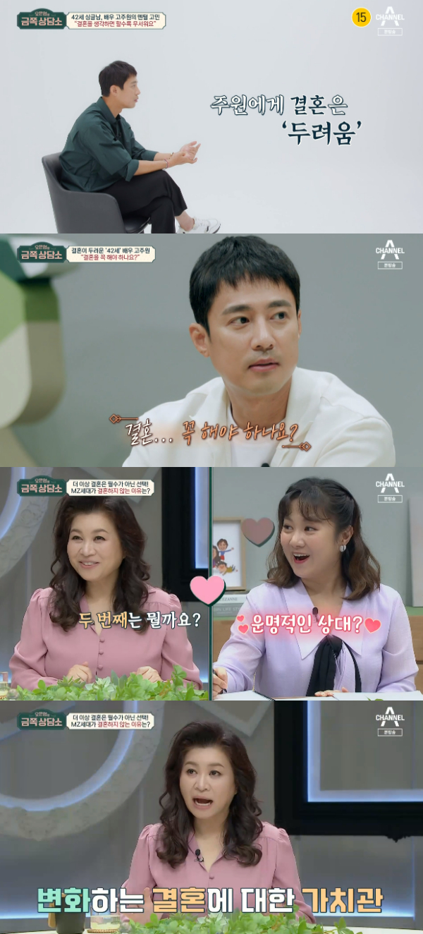 16일 오후 방송된 채널A 예능프로그램 '오은영의 금쪽상담소'에서는 고주원이 결혼에 대해 고민하는 장면이 담겼다.