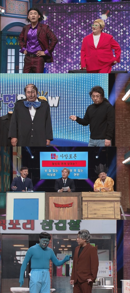 '결혼해 두목' 코너의 뒤를 이어 박빙의 승부를 벌이고 있는 '발명황 조수봉'과 '두분사망토론'도 강력한 한 방을 공개한다. '발명황 조수봉'에서는 문세윤이 어리바리 캐릭터의 '조수봉' 가면을 벗어 던지고 확 바뀐 모습으로 변신한다. '두분사망토론'의 이상준, 박영진은 '옷 잘 입는 이상준 VS 옷 못 입는 현빈'을 주제로 토론을 벌인다.