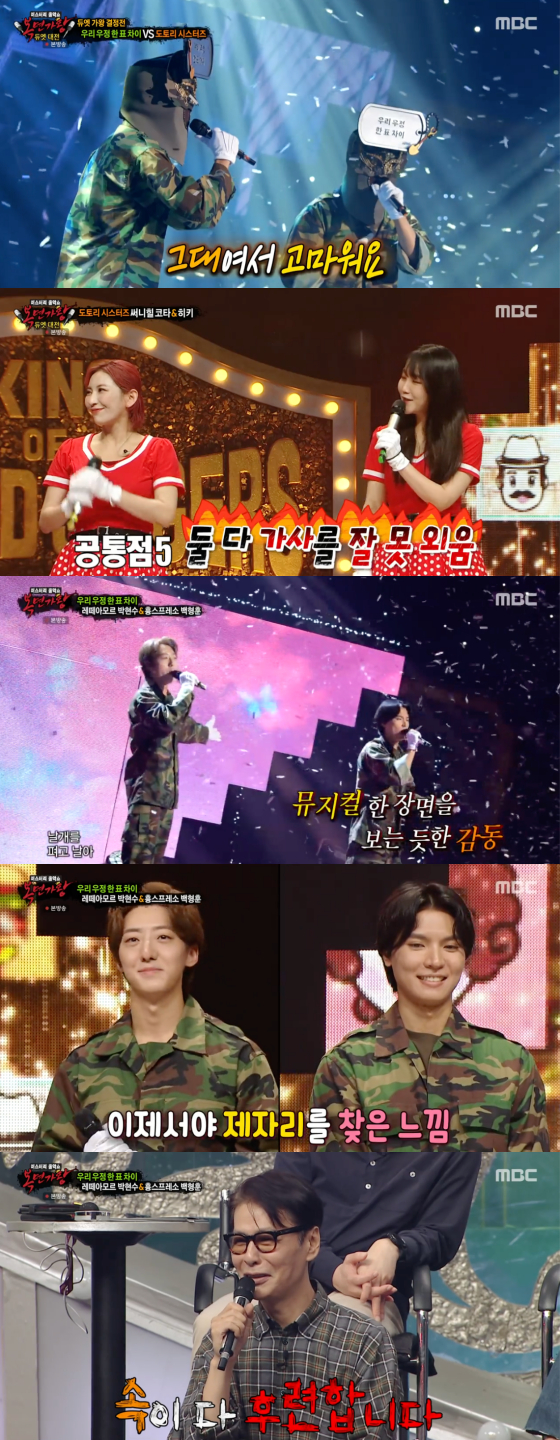 이후 특별 무대를 통해 2대 듀엣 가왕이 된 우리 우정 한 표 차이의 정체가 공개됐다. 남다른 깊이로 이승열의 '날아'를 열창한 두 사람의 정체는 바로 레떼아모르 박현수와 흉스프레소 백형훈이었다. 백형훈은 앞선 출연 당시 1라운드부터 박현수를 만나 한 표 차이로 탈락했던 사연을 전해 안타까움을 자아냈다. 박현수는 그 이후 가왕까지 올랐던 것.