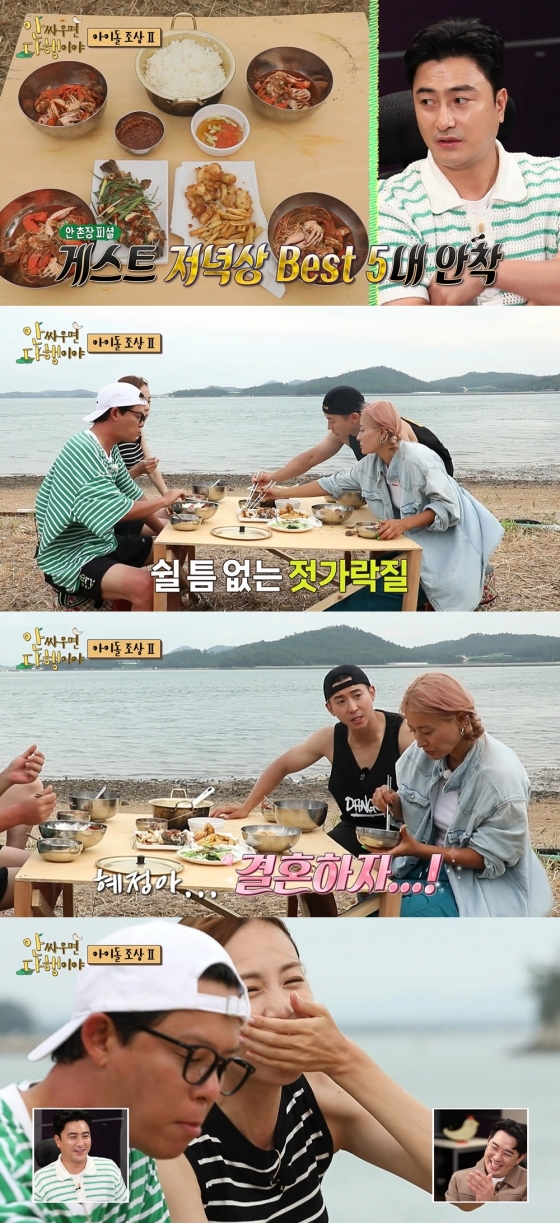 이어 황보의 진두지휘로 한상차림이 차려졌다. 이를 지켜보던 '안촌장' 안정환은 "강동원이 봐야 하는데"라며 황보의 이상형을 언급해 폭소케 했다. 또 "게스트 저녁상 베스트5 내에 든다"고 감탄했다.