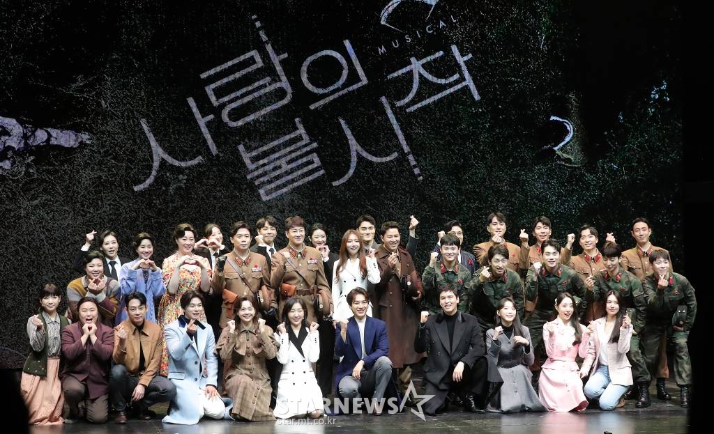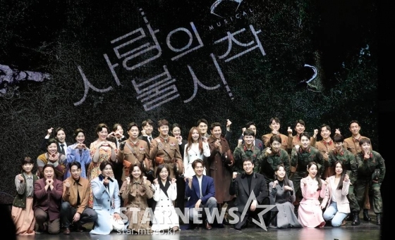 뮤지컬 '사랑의 불시착'은 20일 오후 서울 강남구 신한카드 코엑스 아티움에서 프레스콜을 진행했다. 이날 이규형, 이장우, 임혜영, 김려원, 나하나, 테이, 이이경, 한승윤, 송주희, 김이후, 유연정 등이 참석했다.
