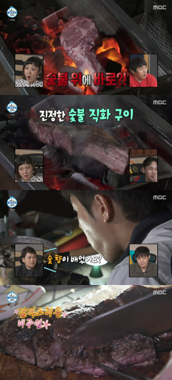 천정명은 "다이어트를 하느라 1일 1식을 하고 있다. 저녁에 몰아서 제대로 먹는다"고 밝혔다. 천정명은 마트에서 구매해온 토마호크를 숯불 위에 그대로 던져 충격을 안겼다. 박나래는 "숯이 묻을 텐데"라고 걱정했다. 천정명은 "털어내면 된다"며 쿨한 모습을 보였다.