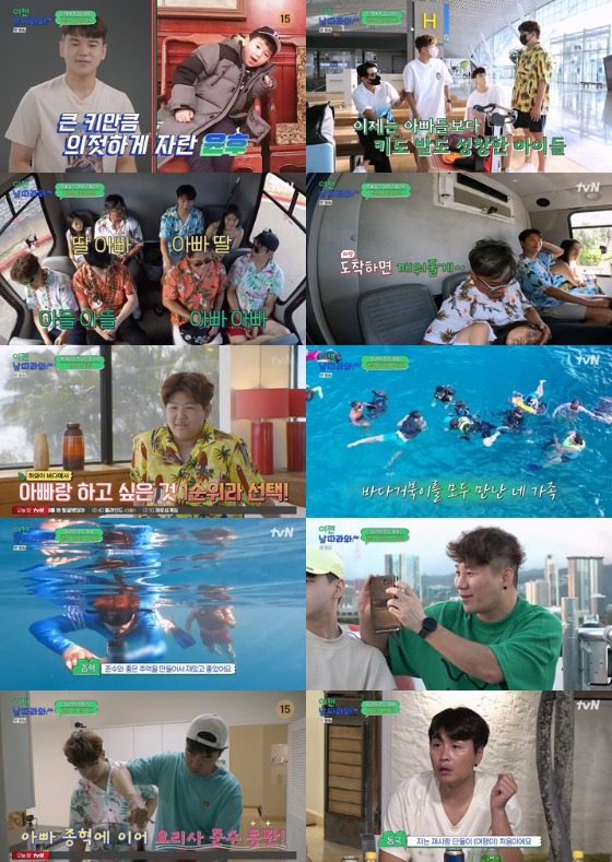윤후의 "그냥 즐기셨으면 좋겠어요. 거두절미하고 따라 오시죠"라는 외침과 함께 하와이 여행 첫 날부터 아이들을 위한 아빠의 무한도전이 시작됐다. 전 멤버들이 생애 첫 스노클링에 도전하게 된 것에 대해 이준수는 "하와이 바다에서 아빠랑 하고 싶은 것 1순위"라고 이유를 밝혔다. 아빠들은 물 앞에서 한없이 작아지는 모습을 보이는 것도 잠시 윤후 대장의 멋진 다이빙을 시작으로 스노클링을 즐겼고, 행운의 거북이를 발견하는 등 평생 잊지 못할 추억을 쌓았다. 이에 이종혁은 "준수와 좋은 추억을 만들어서 재미있고 좋았다"라고 말했고, 추성훈은 "처음에는 (입수부터) 망설였지만 아이들이 짠 여행을 따라가다 보니 재미있었던 하루였다"며 만족감 100%를 드러냈다.