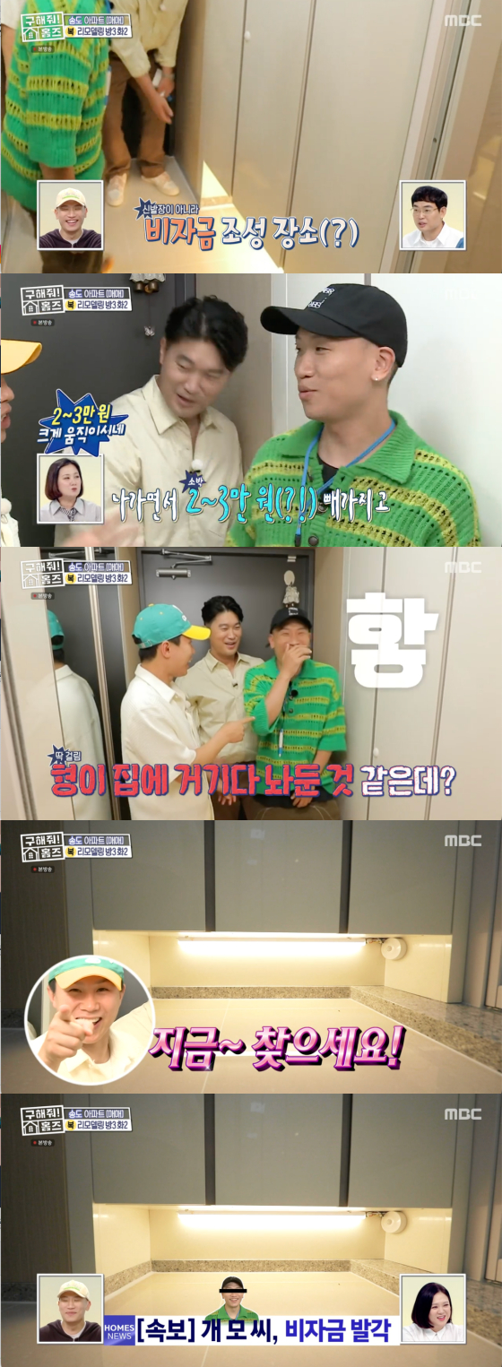 이날 개코는 현관에 들어서자마자 "남편 분들 원래 이런데 비자금 있지 않냐"며 신발장 하단을 매만졌다. 김숙은 이에 "비상금도 아니고 비자금이냐"고, 붐은 "규모가 얼마나 큰 거냐"고 덧붙여 웃음을 자아냈다.