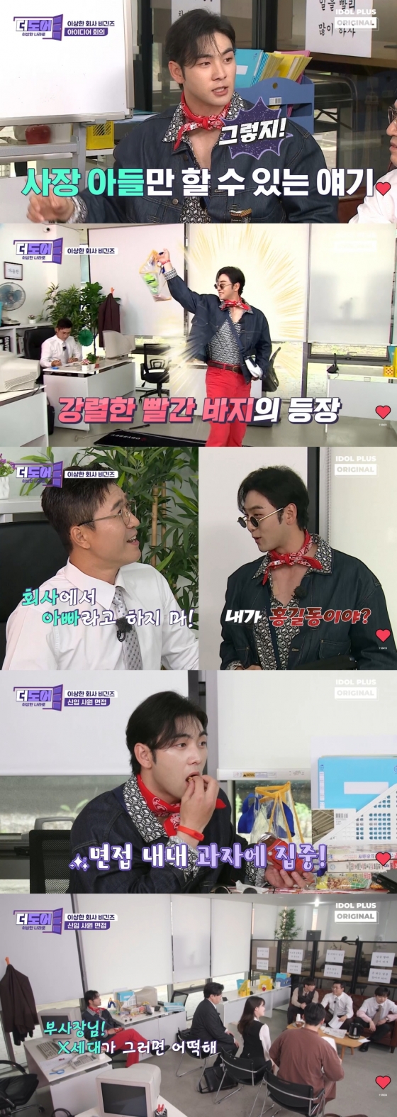 백호는 MZ세대도 울고 갈 X세대 '금수저'로 변신해 쉴 틈 없는 웃음을 안겼다. 백호는 사장 김종민을 향해 "아빠!"를 외치며 등장해 현장을 압도했다. 이어진 신입 면접에서는 "X세대는 '라떼는 말이야'하면 안 된다"며 질문 대신 과자 먹방을 펼쳤고, 아이디어 회의에서는 "다 같이 출근하지 말자"며 90년대에 메타버스를 소환하는 등 폭주하는 애드리브로 폭소를 안겼다.