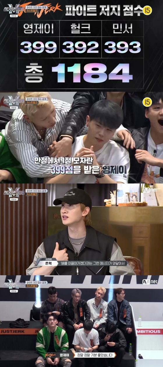 저스트절크는 헐크가 가장 낮은 점수를 기록했지만 그마저도 392점이었다. 민서는 393점, 영제이는 399점을 받으며 저스트절크는 총 1184점이라는 놀라운 점수를 기록했다.
