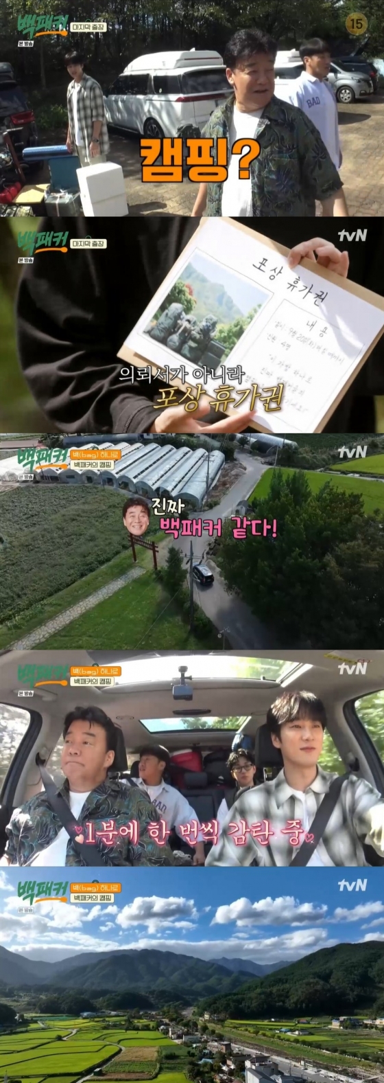 캠핑장으로 이동하는 백종원은 "야 오늘 진짜 부담 없다. 진짜 백패커 같다"라며 기뻐했고, 운전하던 안보연은 "날씨 왜 이렇게 좋아"라며 하늘을 감탄했고, 딘딘도 "하늘이 도와주네. 마지막이라고 반겨주는 것 같아"라며 설렌 마음을 안고 캠핑장으로 향했다.