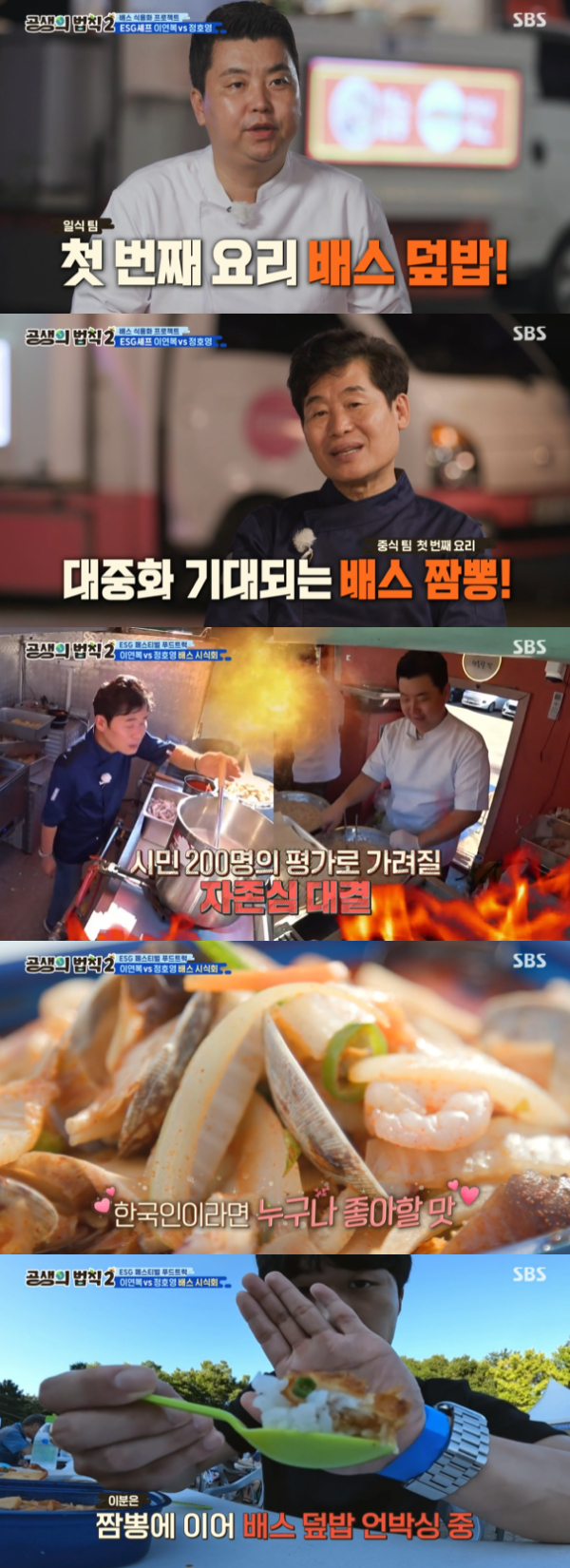 '공생의 법칙2'에서 이연복과 정호영이 생태계 교란 종인 배스로 다양한 요리를 시도했다.