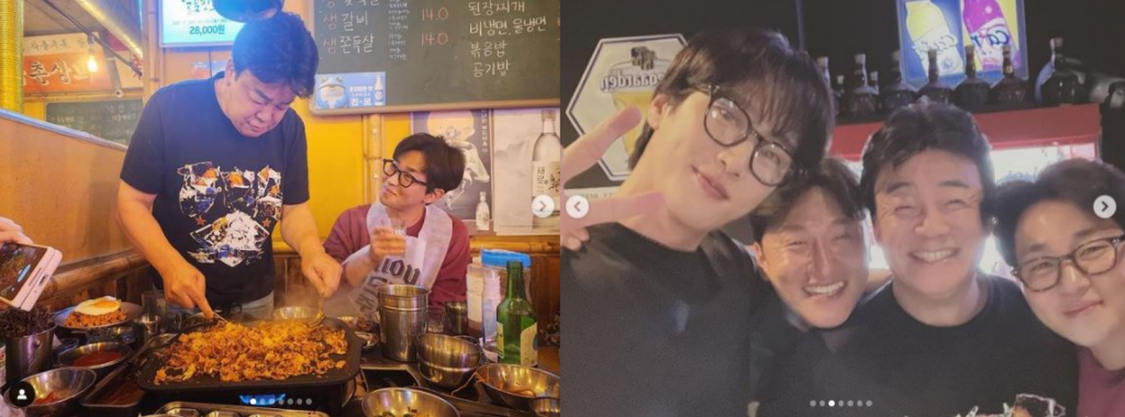 딘딘은 7일 자신의 인스타그램을 통해 "아쉬우니 좀 더 '백패커' 회식 도망간 순서 백종원, 오대환 동시 퇴근 안보현, 딘딘"이라는 글과 함께 여러 장의 사진을 공개했다.
