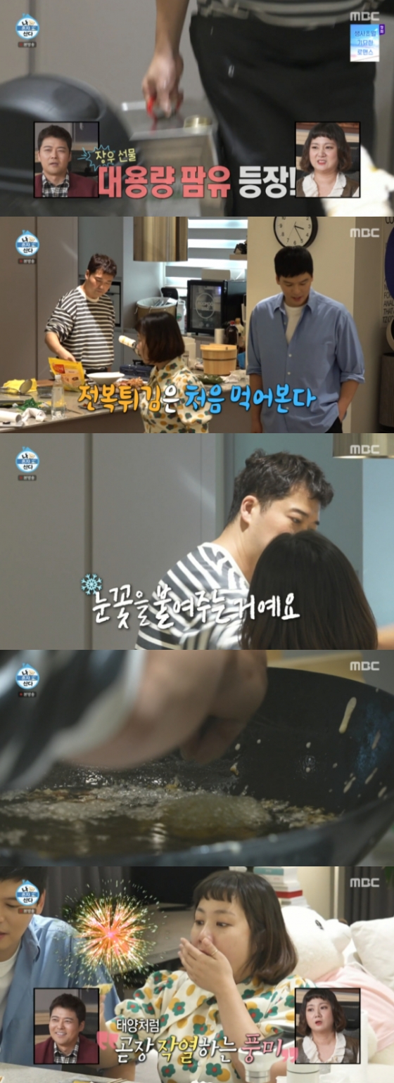 '나 혼자 산다'에서 박나래가 전현무가 요리한 전복 튀김 맛에 감동했다.