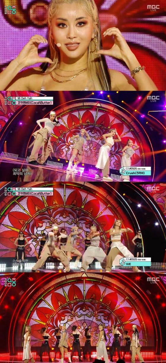 코카앤버터는 8일 오후 방송된 MBC '쇼! 음악중심'에 출연해 싱글 1집 'Mi Deh Yah(미데야)'의 타이틀곡 'Mi Deh Yah(Feat.쿤타)' 무대를 선보였다.