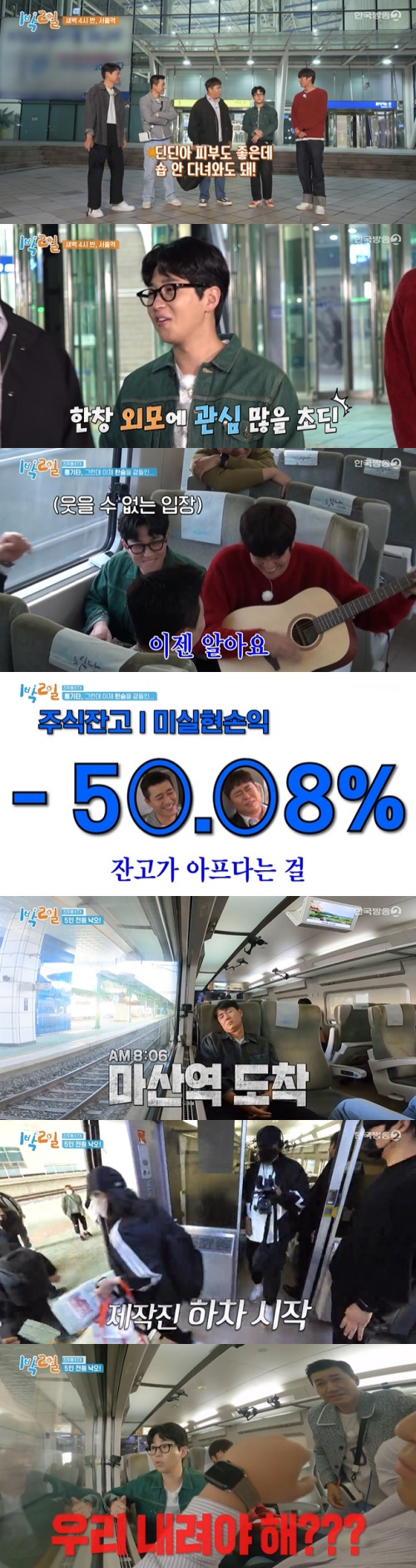 멤버들이 하나둘 잠든 가운데 기차는 마산역에 도착했다. 한 정거장 후면 진주역 도착하는데 제작진이 내릴 준비를 하더니 급기야 모두 하차를 했다. 객실은 텅빈 상태가 됐고 멤버들은 뒤늦게 알아차리고 당황했다. 알고 보니 제작진은 마산역 도착 20분 전 단체 대화방에서 경호팀과 거치팀을 제외한 전 스태프의 하차를 공지했다.