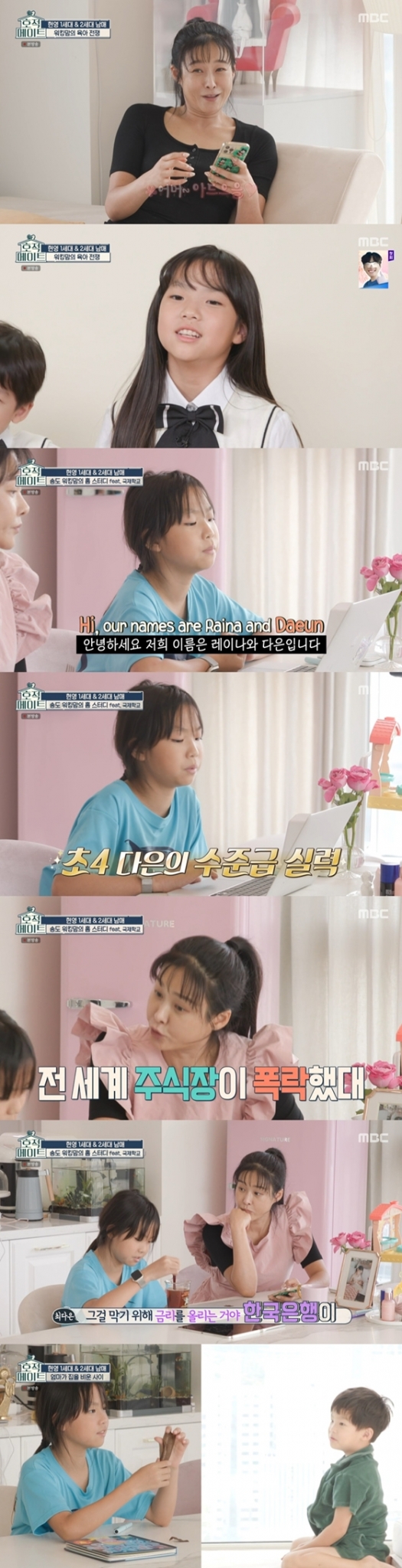 특히 현영의 딸 다은이는 11세임에도 불구, 엄마가 언급한 '전세계 주식 폭락'에 대해 "금리가 올라가서 그래"라고 말했다. 이어 다은이는 "물가가 올라서 그걸 막기 위해 금리를 올리는 거야. 한국은행에서"라고 경제 상황을 정확히 알고 있어 현영을 놀라게 했다. 7세부터 주식을 시작했다는 다은이의 똑부러진 모습은 감탄을 자아냈다.