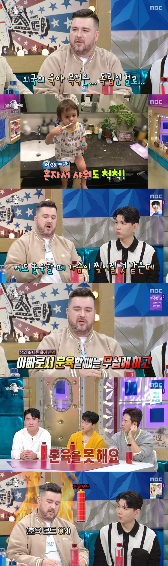 이어 샘해밍턴은 "생각 차이지만 언젠가는 아이가 혼자 할 수 있게 해줘야 한다. 늦게 하게 한다면 위험하고 불편할 수 있다"라며 "아빠라서 훈육할 때 무섭게 하지만 안 그럴 땐 친구처럼 하는 것도 중요하다"라고 훈육에 중요성을 언급했다.