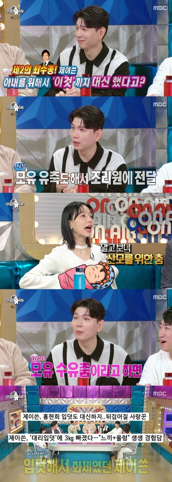 이에 제이쓴은 홍현희가 임신 중 서운했던 이야기를 언급했다. 제이쓴은 "아시다시피 제가 입덧을 했잖아요. 홍현희 씨가 고마워했지만 한편으로는 조금 서운했다. 보통 입덧을 하면 남편이 새벽에 뭔가 사다 주는 데 같이 드러누워있으니까"라고 말해 안타까움을 자아냈다.