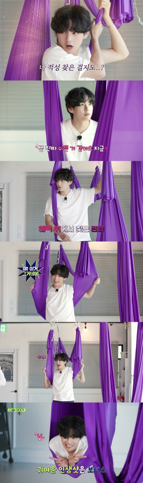 뷔는 보라색 해먹과 함께하는 수업 내내 사랑스러운 모습으로 팬들을 심쿵하게 했다. 해먹을 그네 타듯이 타고 놀거나, 동작을 성공한 뒤 "야 나 이거 재능이 있구나"라며 스스로 감탄하기도 했다.