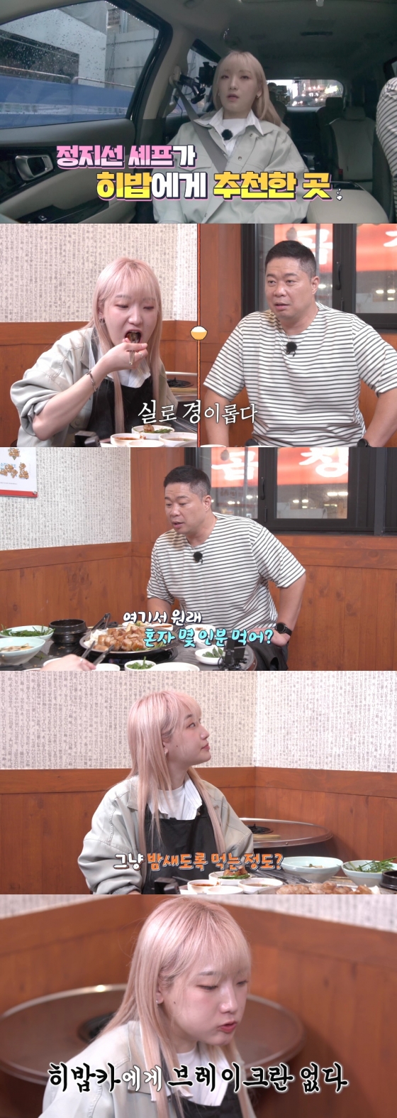 앞서 진행된 녹화에서 히밥은 직접 섭외한 단골 곱창집으로 향하면서 "정지선 셰프님이 제가 곱창을 좋아하는 걸 알고 추천해준 곳이다. 예전에 정지선 셰프와 함께 일했던 분이 운영하는 식당이다. 너무 맛있어서 곱창을 먹을 때는 여기만 온다"고 자랑했다.