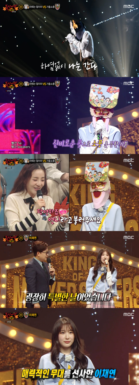 가을소풍의 정체는 바로 그룹 아이즈원, 댄스 크루 WANT 출신이자 솔로로 재데뷔한 이채연이었다. 이채연은 오랜만의 독무대였다며 떨림을 전했고, 김성주는 힌트 속 동생이 있지(ITZY) 채령이라고 언급했다. 이채연은 동생과 공감대가 맞아 "서로 의지가 되고 힘이 된다"고 덧붙여 훈훈함을 자아냈다. 이채연은 이후 솔로 앨범을 소개하며 "부족하지만 선물 같은 가수가 되도록 노력하겠다"고 소감을 마쳤다.
