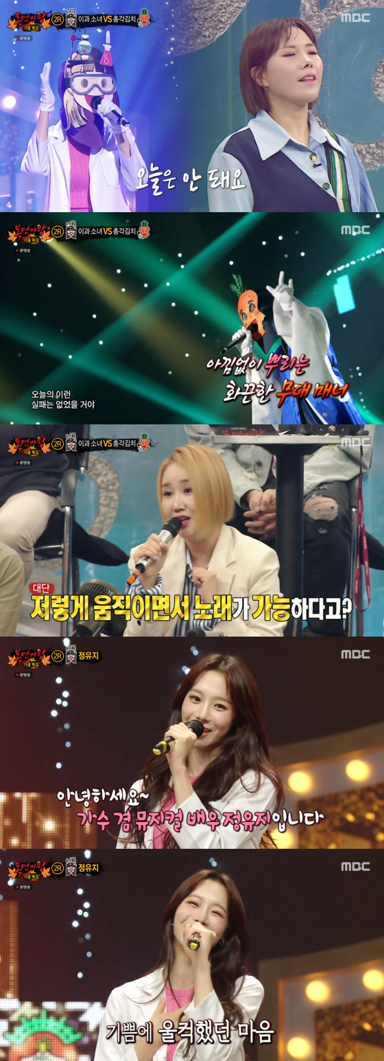 이어 '이과 소녀'와 '총각김치'의 대결이 그려졌다. 이과 소녀는 박화요비 '그런 일은'으로 고급스러운 가창력을 뽐냈으나, 총각김치가 소찬휘의 '현명한 선택'을 매운 맛 고음으로 내지르는 바람에 바로 패하고 말았다. 이과 소녀의 정체는 바로 걸그룹 베스티 출신에서 뮤지컬 배우로 거듭난 정유지였다.