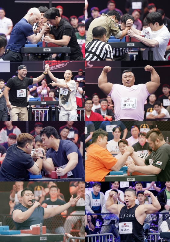 공개된 스틸컷에는 서로의 손을 맞잡고 팔씨름을 준비 중인 참가자들의 모습이 담겨 있다. 굳게 다문 입술과 꼭 이기겠다는 의지를 담은 결연한 표정이 경기 직전의 긴장감 가득한 현장 분위기를 고스란히 전달하고 있다.