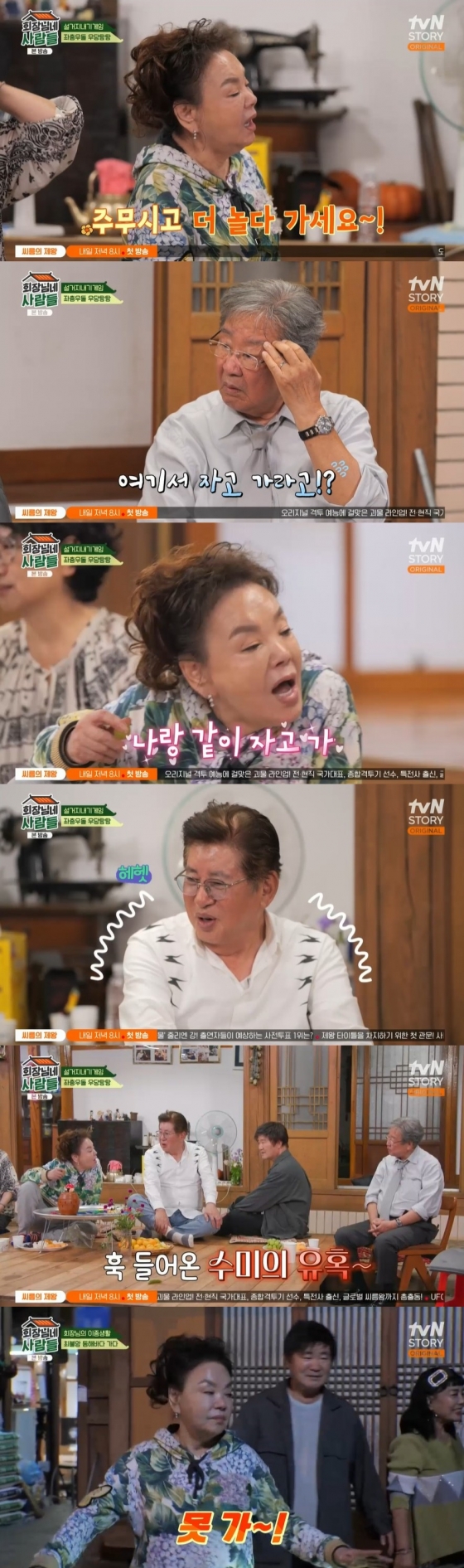 17일 오후 방송된 tvN 예능 프로그램 '회장님네 사람들'에서는 김용건, 김수미, 이계인의 시골집에 드라마 '전원일기'의 회장님 최불암, 첫째 며느리 김혜정, 둘째 며느리 박순천, 쌍봉댁 이숙, 일용이 박은수가 초대됐다.