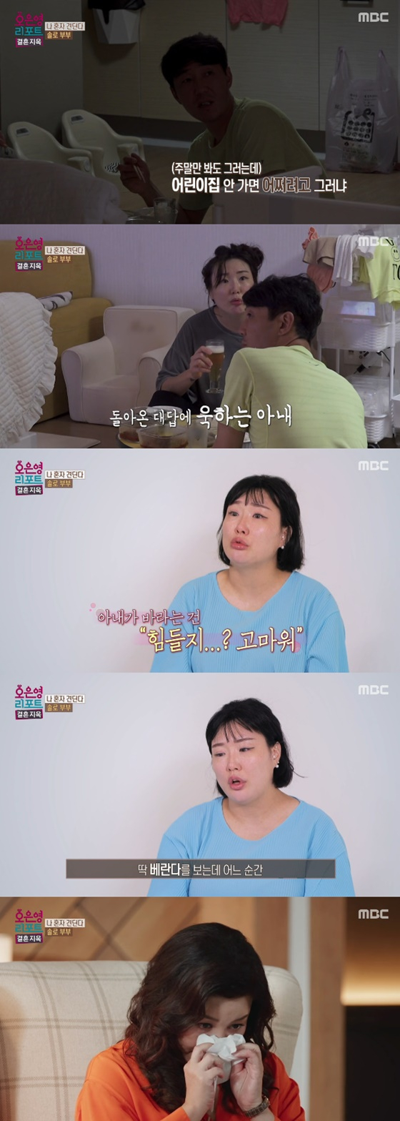 이어 "혼자 별의별 생각을 하면서 혼자 울고 있더라. 남편에게 너무 힘들어서 우울증인 거 같다고 말했더니 '너만 그런 거 아니야. 너만 힘든 거 아니야'라고 하더라"며 덧붙였다. 아내의 고민이 공개된 후 스튜디오는 눈물바다가 됐다. 오은영 박사도 엄마의 고충을 이해하며 눈시울을 붉혔다.
