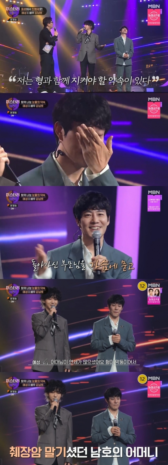 '미스터리 듀엣'에서 가수 예성과 배우 김남호가 눈물의 약속을 고백해 감동을 자아냈다.