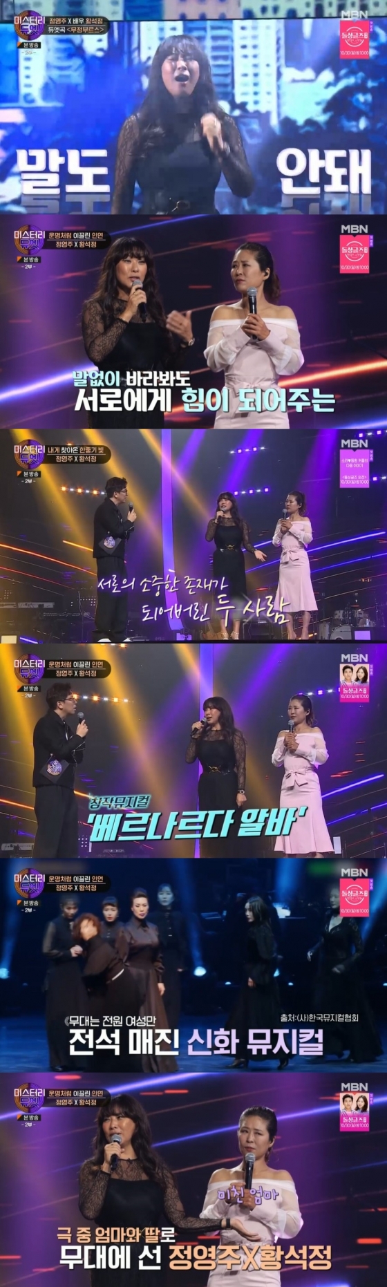 황석정은 정영주를 제작자라고 소개하기도 했다. 이에 정영주는 "제가 지난 시즌에 뮤지컬을 제작했다. 초연 때도 같이 했다. 제 엄마 역할을 했다"라고 말해 출연진을 놀라게 했다. 이에 황석정은 "미친 엄마"라고 말해 출연진을 폭소케했다.