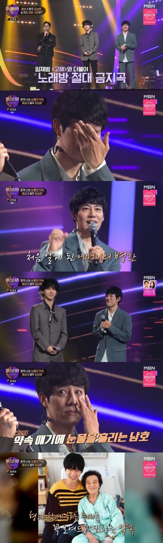 예성은 김남호의 어머니의 생전 모습을 회상했다. 그는 "(형의) 어머님 연세가 많으셨다. 저랑 공연할 때 항상 에너지가 넘치던 형이었는데, 어머니가 췌장암 말기라는 소식을 들었다. 공연을 하고 마지막에 인사하는데 눈물이 많이 났다"라며 안타까워했다. 이어 "그러고 나서 제가 어머니랑 약속을 했다. 어머니가 아프셔서 형 무대를 아직까지 제대로 본 적이 없으셨다. 그래서 '직접 오실 수가 없다면 제가 방송에서 형과 무대를 할 테니 그때까지 건강하셨으면 좋겠다'라고 약속했다"라며 과거를 회상했다.