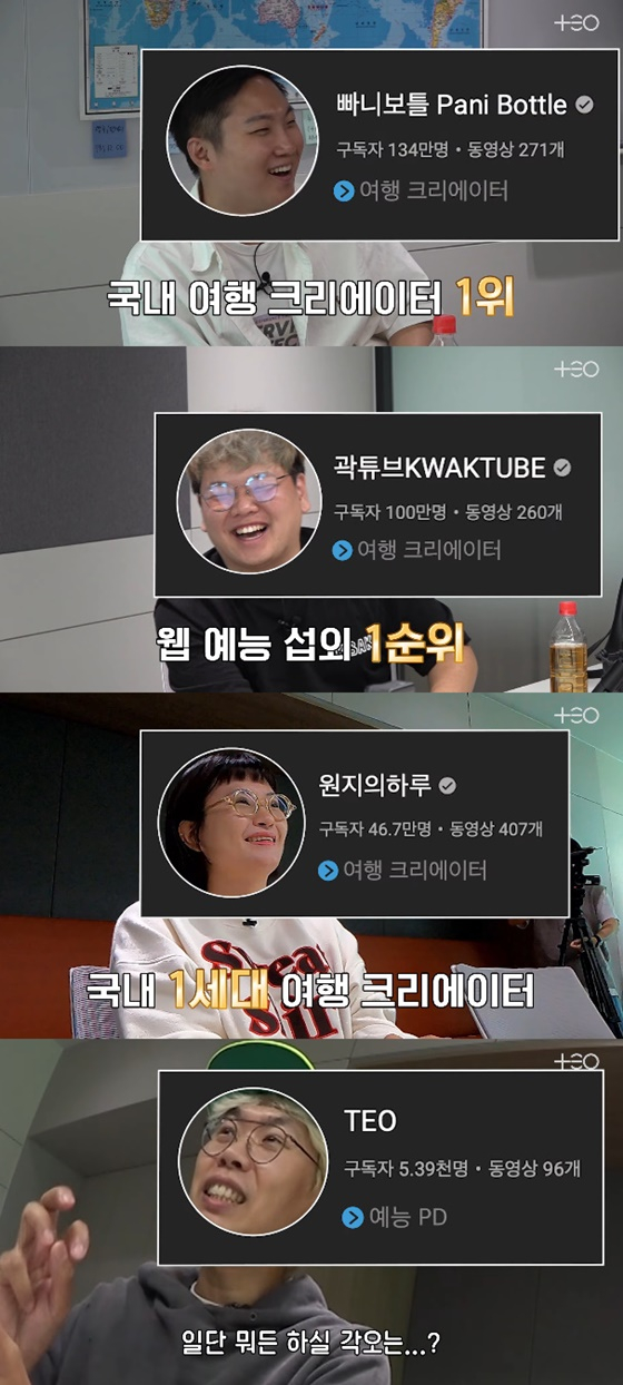 공개된 영상에는 유명 여행 유튜버인 빠니보틀, 곽튜브, 원지의 하루와 만난 김태호 PD의 모습이 담겼다.