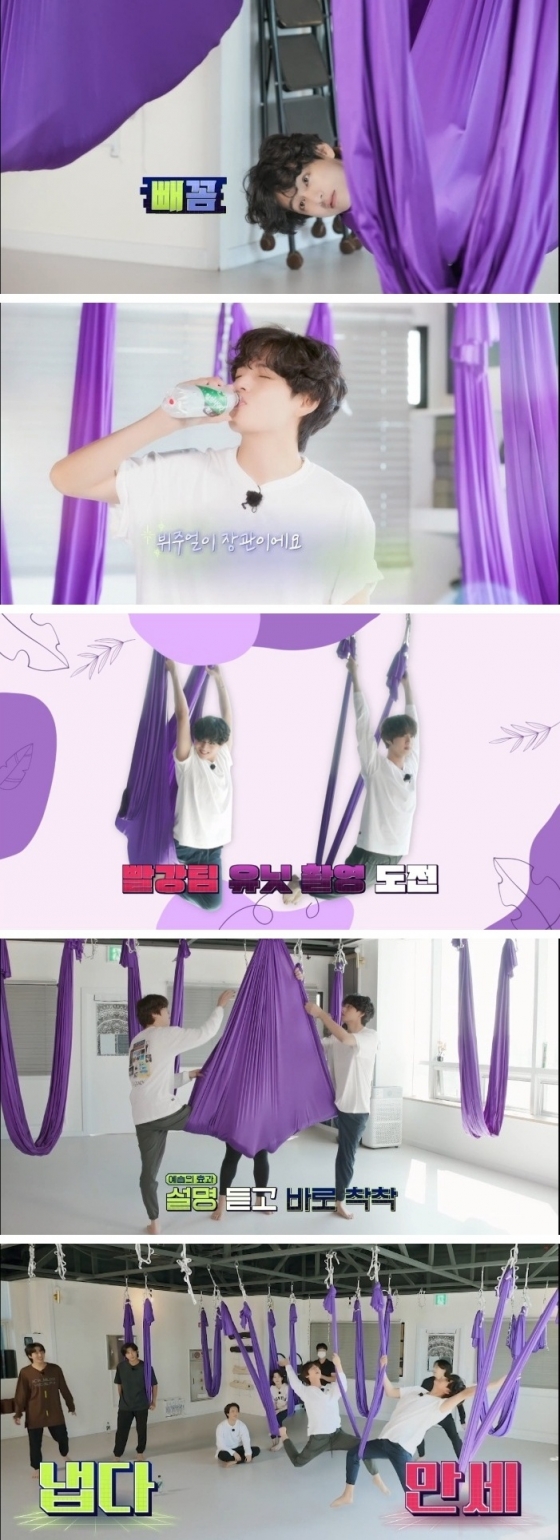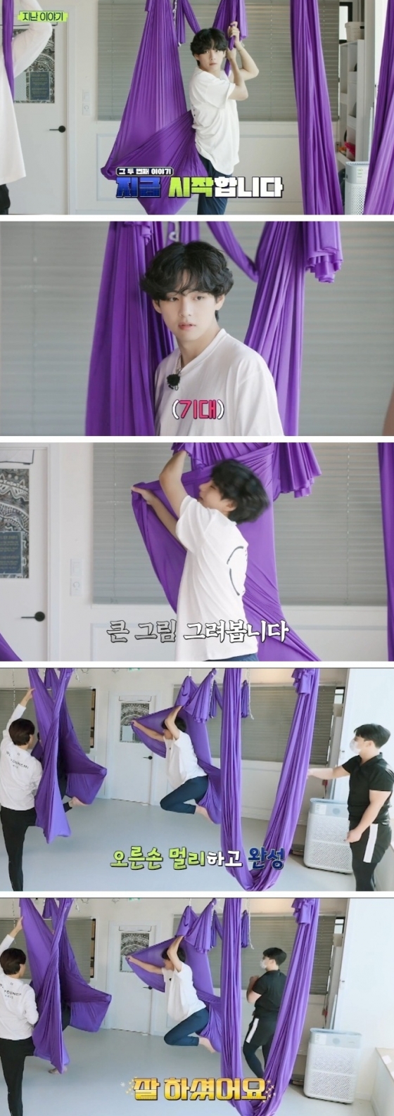 방탄소년단(BTS) 뷔가 좌충우돌 플라잉 요가 도전으로 인생 샷을 남기는데 성공하며 팬들에게 즐거움을 안겼다.
