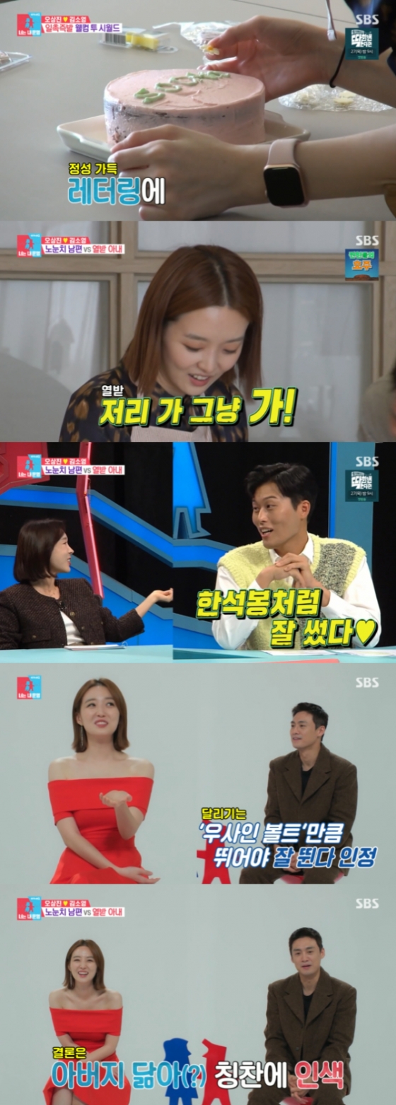 김소영은 케이크를 완성시키고 오상진에 "오빠 이거 내가 엄청 예쁘게 만들었어. 봐 봐 빨리"라며 오상진을 불렀다. 오상진은 "우와"라며 영혼 없는 리액션을 보여 웃음을 자아냈다. 오상진은 케이크를 보며 "집에서 한 것 같아"라며 솔직하게 평가했다. 이에 김소영은 싸늘한 반응을 보였다. 이지혜는 "신혼 때랑 많이 변했어"라며 서운해했다.