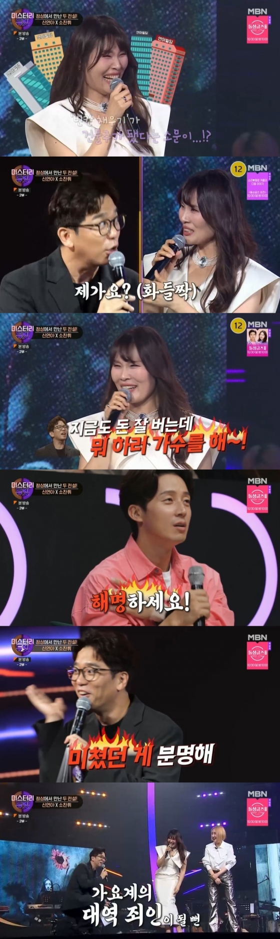 이어 신연아는 "소찬휘 1집 전곡을 다 코러스 했다"라고 과거 경력을 이야기했다. 이에 소찬휘는 "제 1집을 한 후로 너무 바빠졌다"라며 오랫동안 얼굴을 보지 못한 사연을 말했다. 소찬휘는 "그때 빈칸 채우기가 건물을 샀다는 소문이 있었다"라며 신연아의 전성기를 이야기했다.